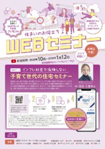 さて、クミ得住宅支援として、WEBセミナーを開催します。今回は、子育て世代の住宅セミナー内容となっております。