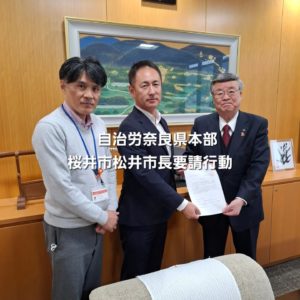 11月13日。自治労奈良県本部は、桜井市松井市長へ確定闘争要請行動を実施してきました。
