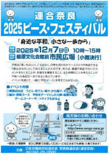連合奈良が2025ピースフェスティバル 2025.11.17 2025ピースフェスティバル 2025年12月7日(日曜日)連合奈良が2025ピースフェスティバルを橿原文化会館前広場にて、10時より開催します。自治労奈良県本部は、から揚げ・揚げたこ焼き・ハッシュポテトの模擬販売をブース出展します。入場無料なのでどなたも参加いただけます。 ぜひ、絶品から揚げ食べに来てくださいね。