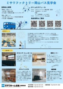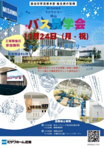 ミサワホームの工場を見学できるバス見学ツアーです。岡山と少し距離はありますが、参加費無料です。
