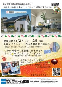 クミ得 ミサワホーム近畿 2026.01.21 クミ得 ミサワホーム近畿 ■モデルハウス完成見学会イベント 西大寺菅原町にて来場予約特典付きのイベントとなっております。 当日は、キッチンカーがきて食べ物もご用意しております。 1月24日と25日開催です。 ■■■■■■■■■■■■■■■■ ミサワホーム近畿株式会社 営業推進部 法人推進課 新藤 至高 (シンドウ ヨシタカ) 携帯:080-6238-1015 MAIL: 4846712_08@home.misawa.co.jp